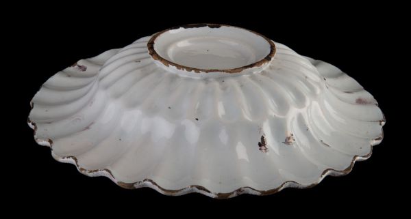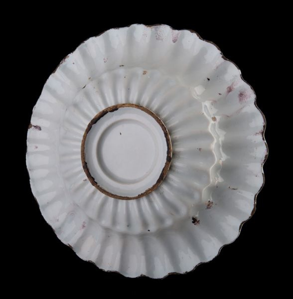 De plooischotel heeft zevenentwintig dubbele plooien rondom een gewelfd plat. Daarop is in blauw een vereenvoudigd dorpsgezicht met kerktoren in een dubbele cirkel geschilderd. De dubbele plooien zijn paars gesprenkeld.