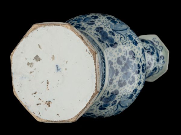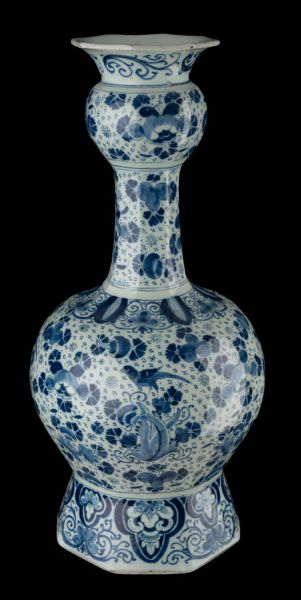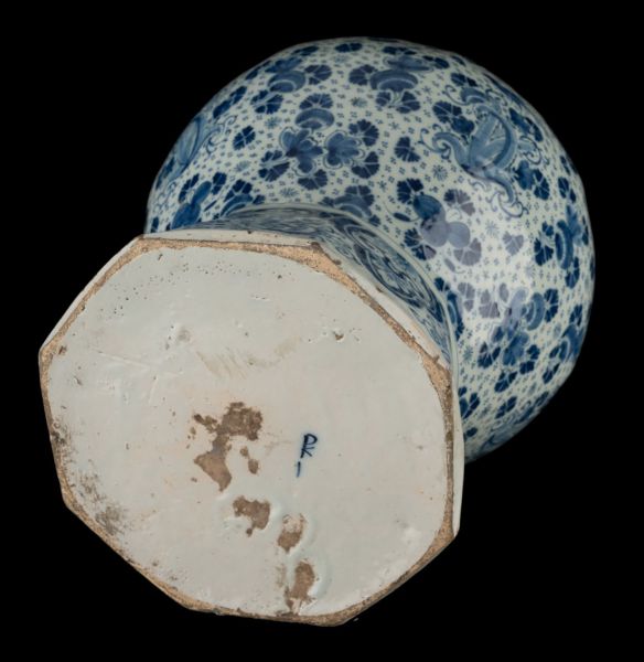 Uitbundige florale decors waarbij de motieven gelijkmatig over het oppervlak zijn verdeeld, werden aan het eind van de zeventiende eeuw immens populair. Ze zijn toegepast op een keur aan Delftse vormen en staan bekend als millefleur of ‘peterselie’-decors. De laatste benaming is te danken aan de in vorm overeenkomstige driehoekige blaadjes. Na circa 1725 raakten deze decoraties grotendeels uit de mode.