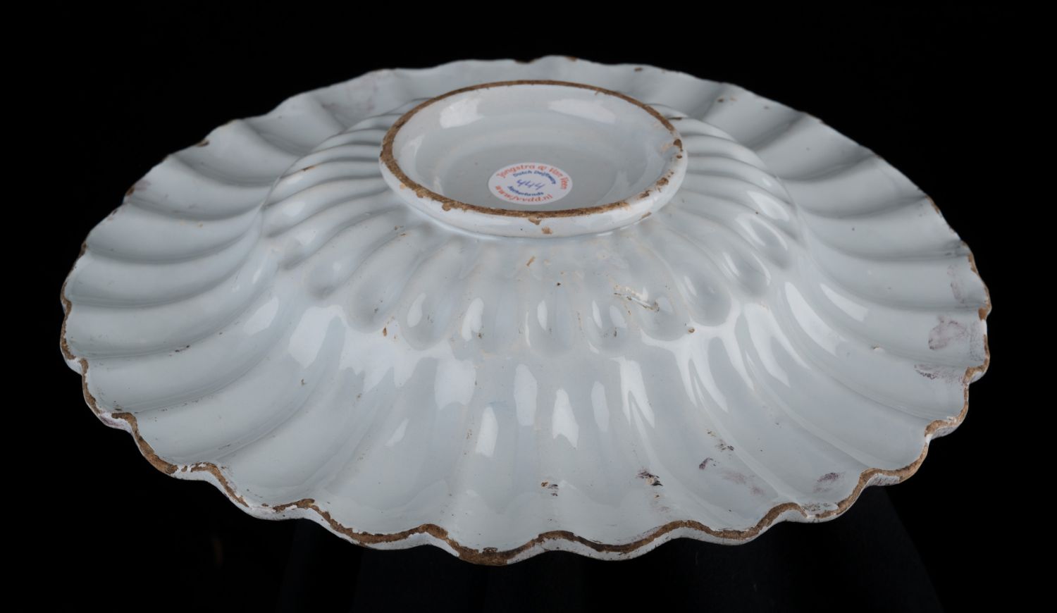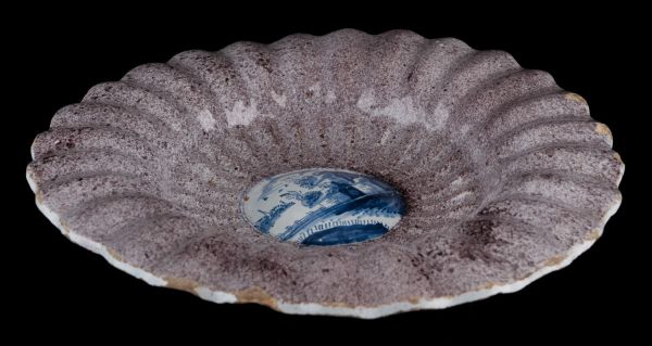 De combinatie van een blauwe beschildering in een paars gesprenkelde omlijsting komt veelvuldig voor bij Nederlandse tegels uit de periode 1660-1750. De op deze plooischotels afgebeelde landschappen (en herders) zijn eveneens vaak op tegels afgebeeld. Om deze reden wordt dit type plooischotel aan tegelbakkerijen toegeschreven, met name aan die in Harlingen of Rotterdam. Wij mogen echter Delft, Haarlem of andere centra niet uitsluiten.