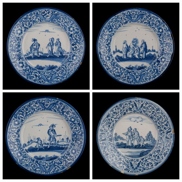 Het blauw-witte bord heeft een brede, vlakke rand en is in het plat beschilderd met de Bijbelse voorstelling van David en Goliath (1 Sam. 17:48-50). Het decor is gevat in een dubbele cirkel. De rand is versierd met twee gevleugelde cherubijnenkopjes en vier bloemen in een decor van gestileerde bladranken. De buitenrand van het bord is effen blauw.